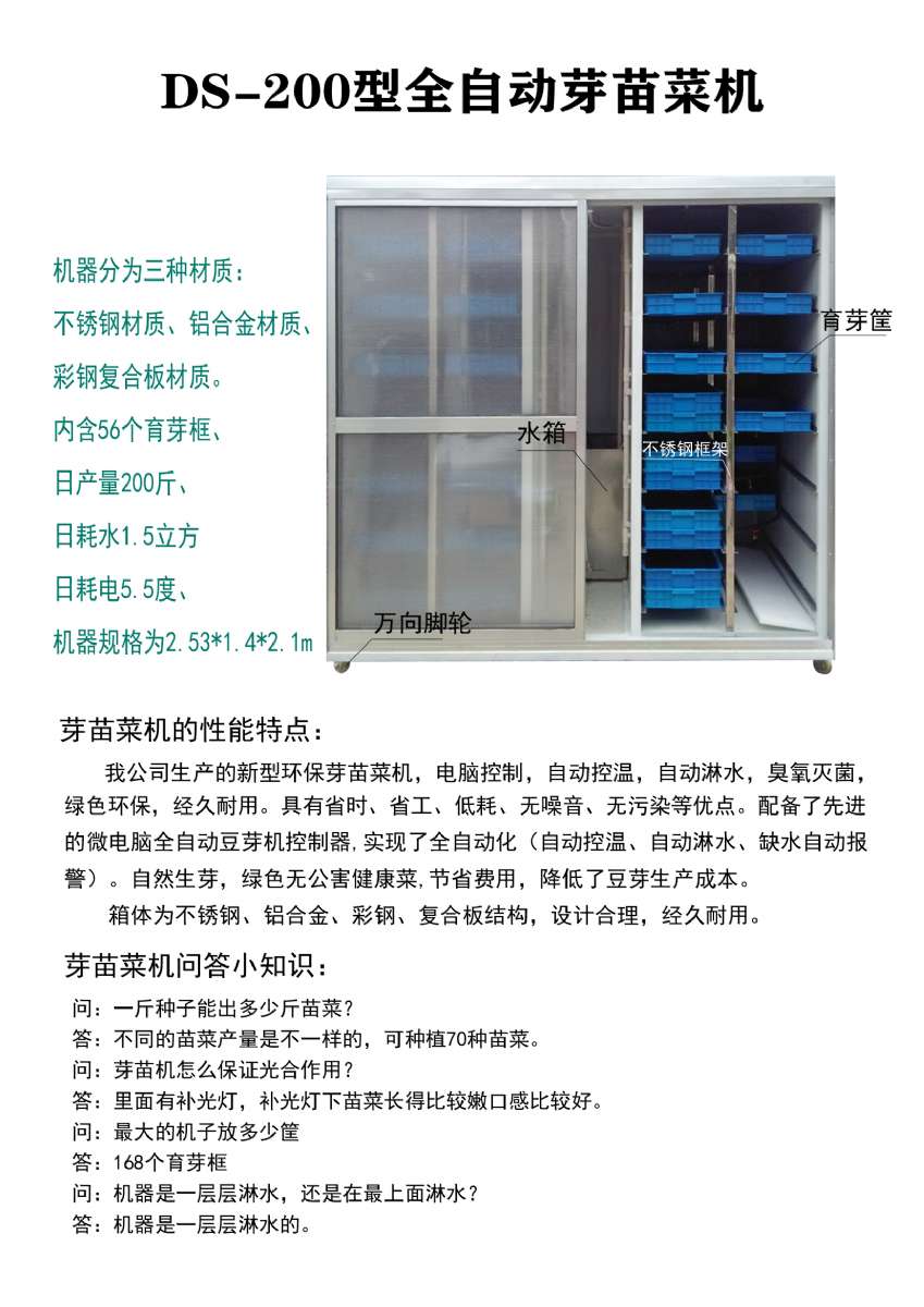 我公司出产的新型环保芽苗菜机,电脑节制,大型全从动豆芽清洗去壳机,风干机,沙拉包拆。挪动淋水设备,经久耐用。全从动洗筐机,节流费用,豆腐机械,天然生芽,设想合理,速冻水饺包拆机,手工面条包拆机,全从动豆腐干机,具有省时、省工、低耗、无乐音、无污染等长处。全从动腐竹机械,配备了先辈的微电脑全从动豆芽机节制器,全从动豆腐皮机,全从动豆芽包拆机,臭氧灭菌!